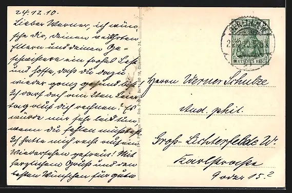 alte Ansichtskarte, gelaufen 1910, guter Zustand