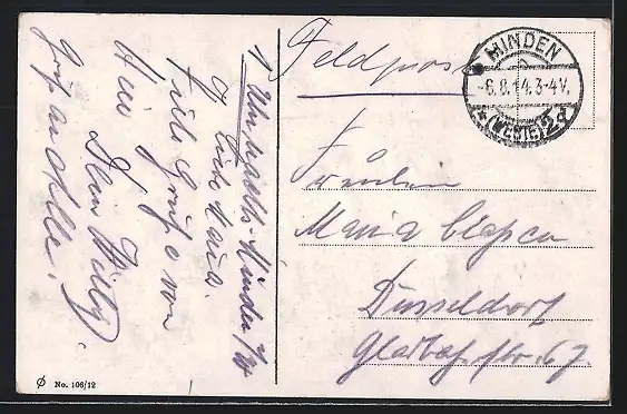 alte Ansichtskarte, gelaufen 1914 als Feldpost, Stempelspur, guter Zustand