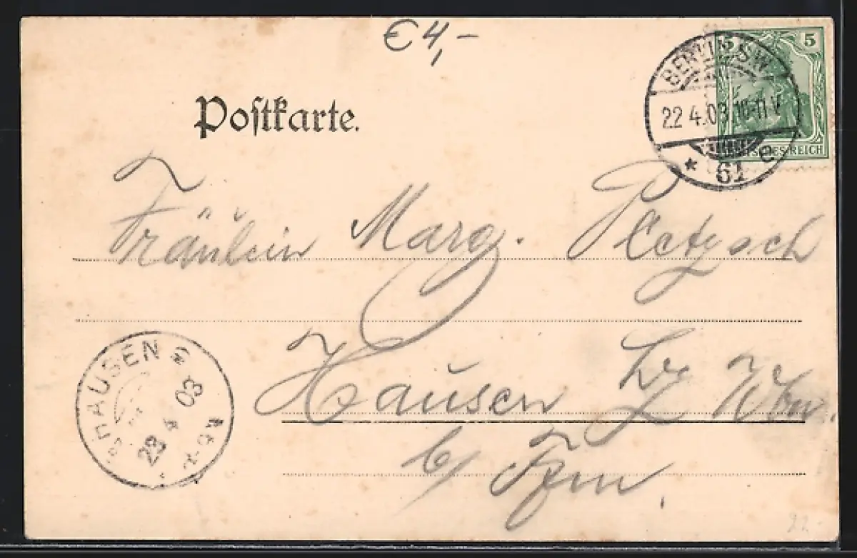 alte Ansichtskarte, gelaufen 1903, Eckknick li. unten, guter Zustand