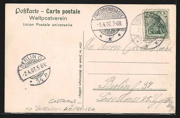 alte Ansichtskarte, gelaufen 1907, guter Zustand