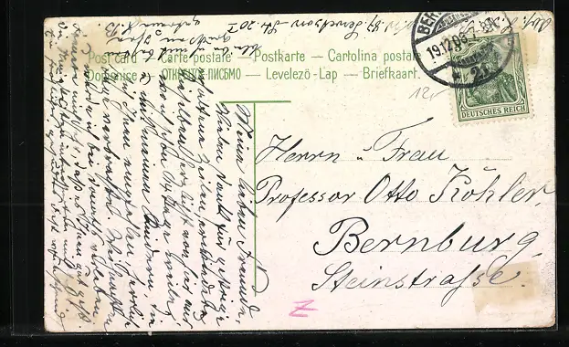 alte Ansichtskarte, gelaufen 1908, Eckknicke links u. rechts, guter Zustand
