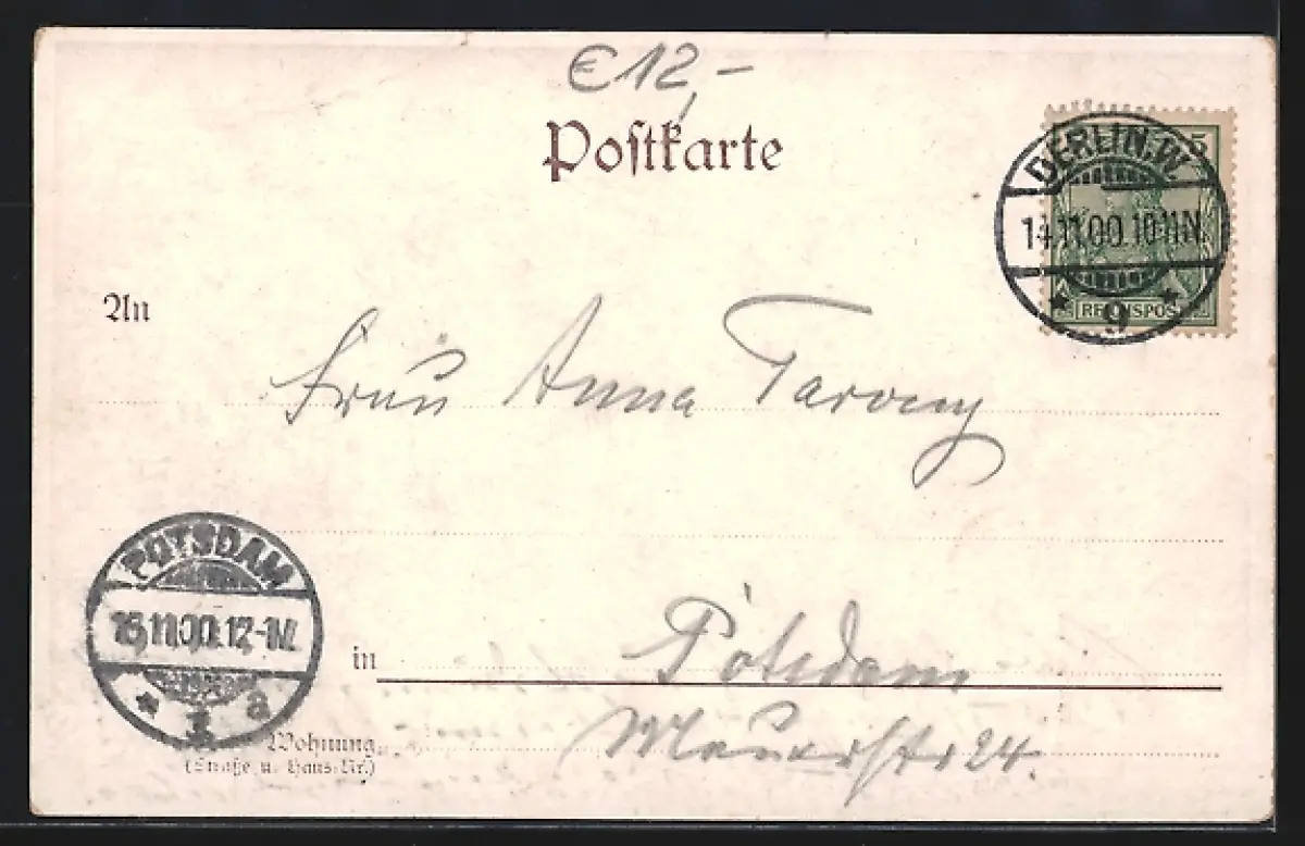 alte Ansichtskarte, gelaufen 1900, guter Zustand