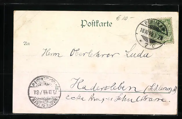 alte Ansichtskarte, gelaufen 1899, guter Zustand