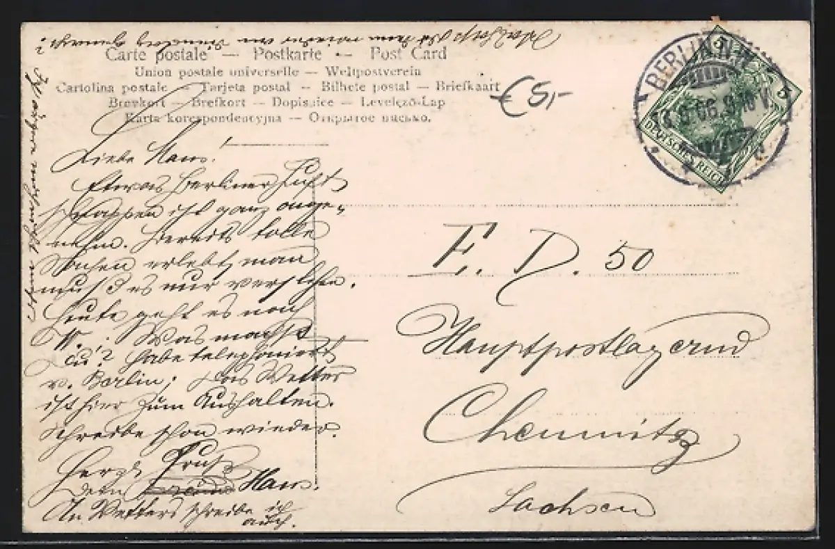 alte Ansichtskarte, gelaufen 1906, guter Zustand