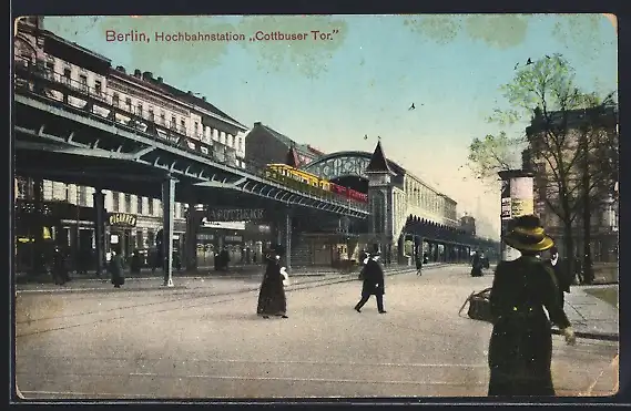 AK Berlin-Kreuzberg, An der Hochbahnstation Cottbuser Tor, U-Bahn