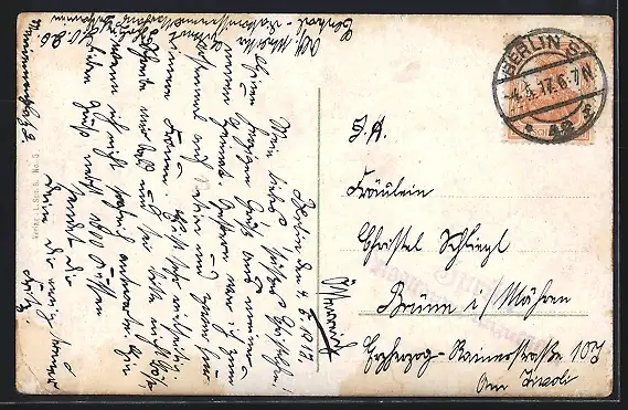 alte Ansichtskarte, gelaufen 1917, Eckknicke re., guter Zustand