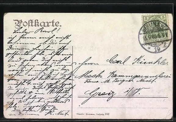 alte Ansichtskarte, gelaufen 1905, Eckknicke li. unten, guter Zustand
