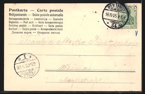 alte Ansichtskarte, gelaufen 1905, guter Zustand