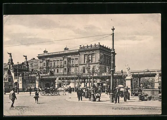 AK Berlin-Kreuzberg, Hallesches Tor mit Hochbahn