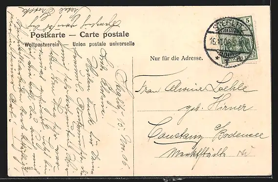 alte Ansichtskarte, gelaufen 1906, Stempelspur, guter Zustand