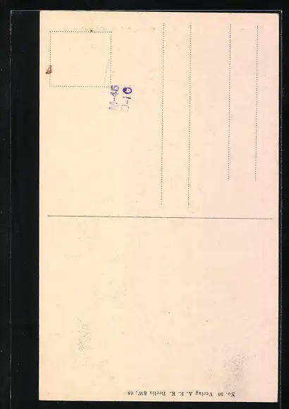 Personenbezogene Daten auf der Rückseite der Karte wurden durch blauen Textmarker unkenntlich gemacht. Die blauen Stellen sind auf die Vorderseite durchgeweicht und wirken sich negativ auf das Postkartenfoto aus
