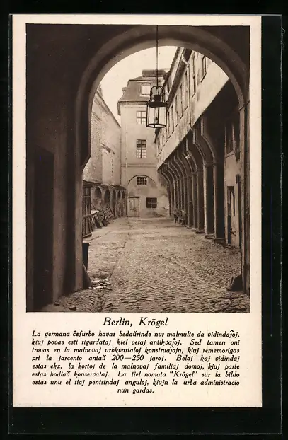 AK Berlin, Krögel-Hof, Beschreibung in Esperanto, Ganzsache
