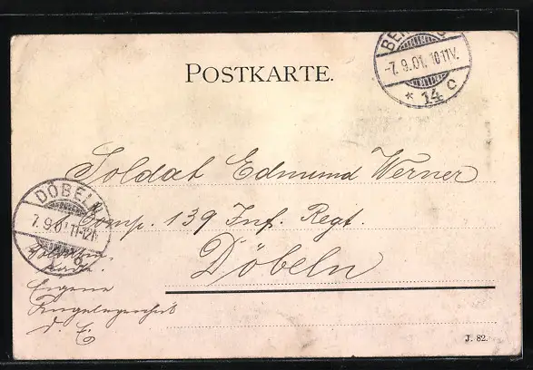 alte Ansichtskarte, gelaufen 1901, Stempelspur, guter Zustand
