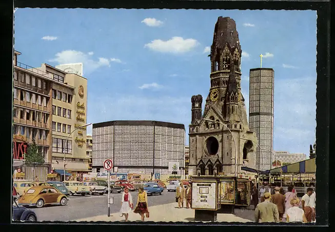 AK Berlin, Kurfürstendamm mit alter und neuer Gedächniskirche