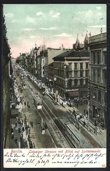 AK Berlin, Leipziger Strasse mit Blick auf Spittelmarkt, Strassenbahn