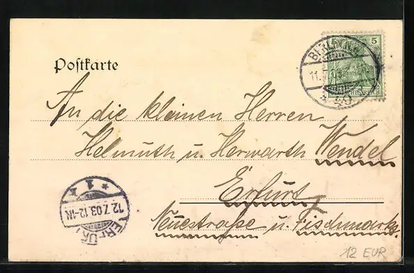 alte Ansichtskarte, gelaufen 1903, guter Zustand