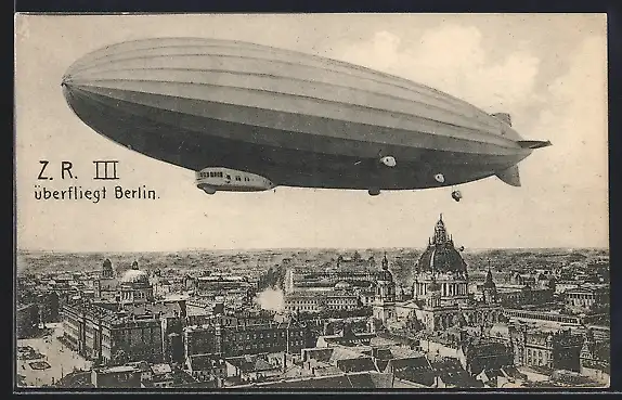 AK Berlin, Luftschiff Zeppelin Z.R. III über der Stadt