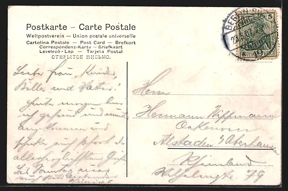 alte Ansichtskarte, gelaufen 1907, guter Zustand