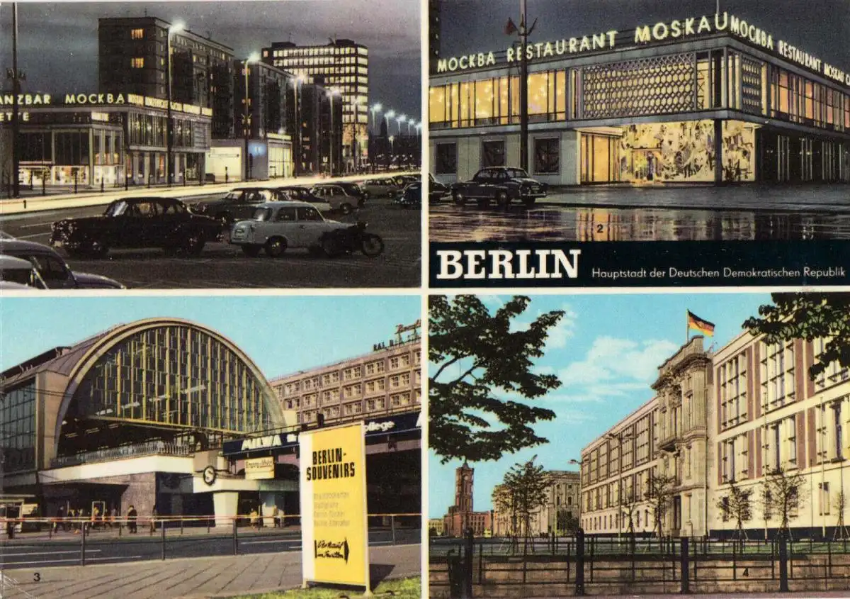 AnsichtskarteBerlin Mittevier Abb. - Karl-Marx-Allee, Restaurant Moskau, Bahnhof Alexanderplatz, Staatsratsgebäude