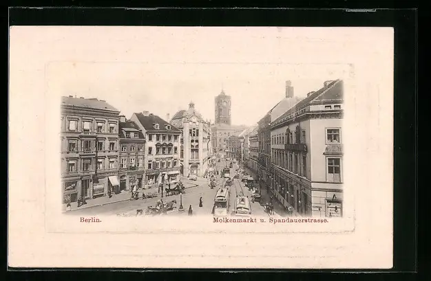 AK Berlin, Molkenmarkt u. Spandauerstrasse mit Strassenbahn