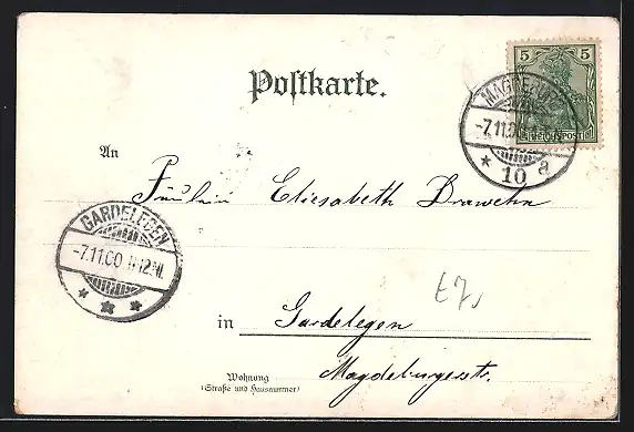 alte Ansichtskarte, gelaufen 1900, Stempelspur, guter Zustand