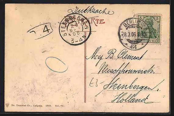 alte Ansichtskarte, gelaufen 1906, Stempelspur, guter Zustand
