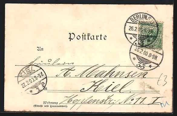 alte Ansichtskarte, gelaufen 1900, Stempelspur, guter Zustand
