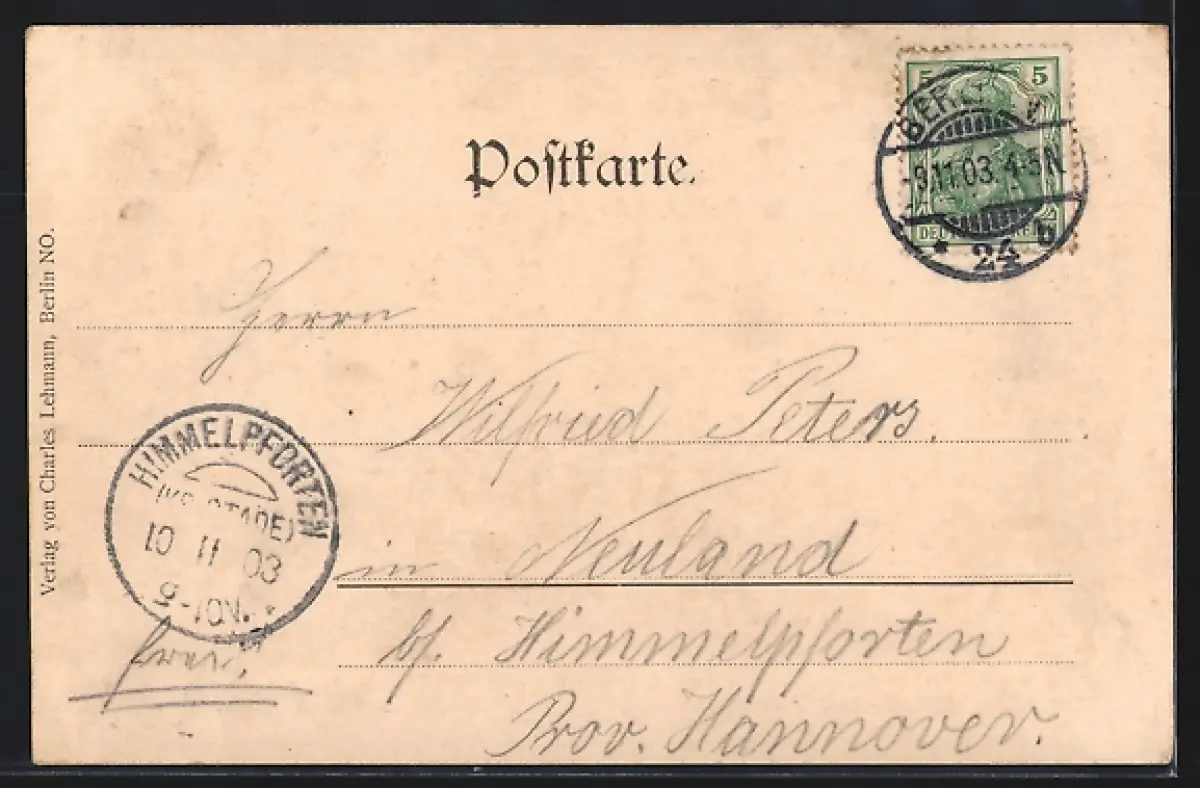 alte Ansichtskarte, gelaufen 1903, guter Zustand