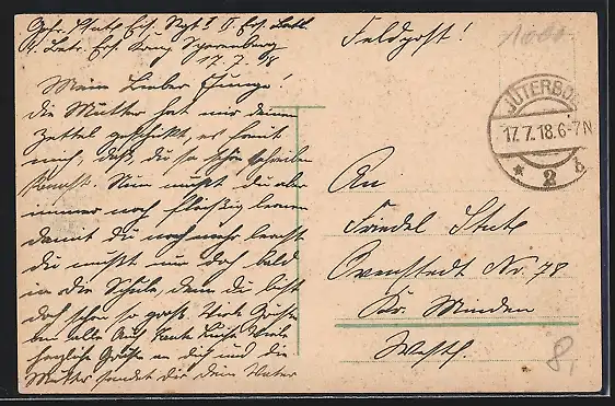 alte Ansichtskarte, gelaufen 1918, guter Zustand
