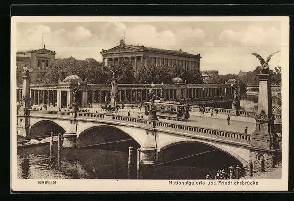 AK Berlin, Nationalgalerie, Friedrichsbrücke mit Strassenbahn