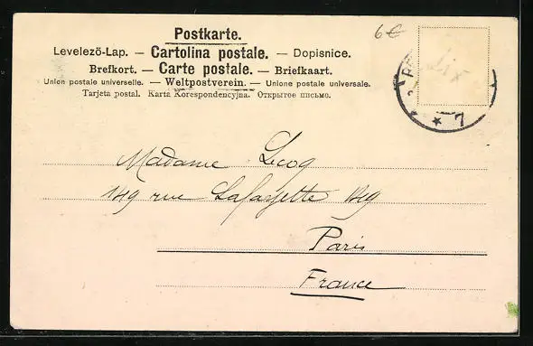 alte Ansichtskarte, gelaufen, Briefmarke entfernt, rückseitig Oberflächenschaden, Eckknick li. oben, guter Zustand