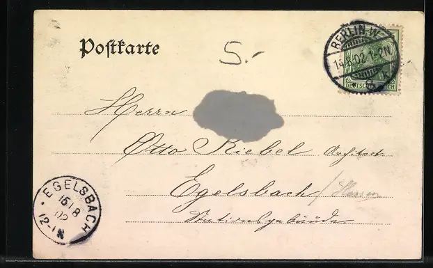 gelaufen 1902, rückseitig Klebe- und Papierreste, guter Zustand