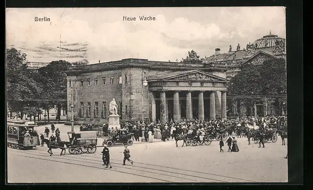 AK Berlin, Neue Wache, Strassenbahn, Kutschen und Automobil
