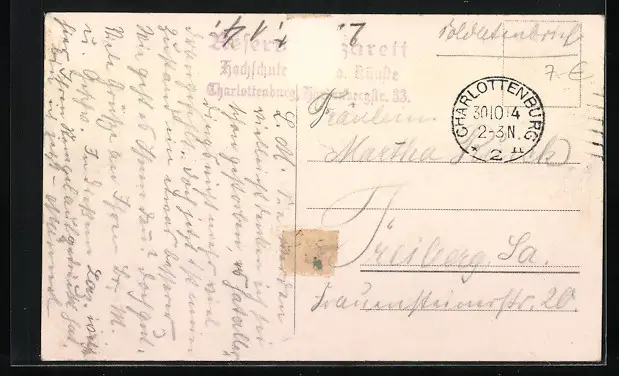 alte Ansichtskarte, gelaufen 1914, rückseitig Klebe- und Papierreste, Stempelspur, guter Zustand
