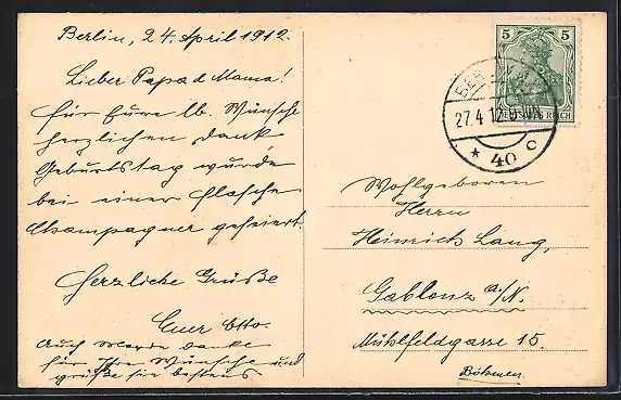 alte Ansichtskarte, gelaufen 1912, guter Zustand