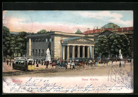 AK Berlin, Neue Wache mit Wachaufzug und Strassenbahn