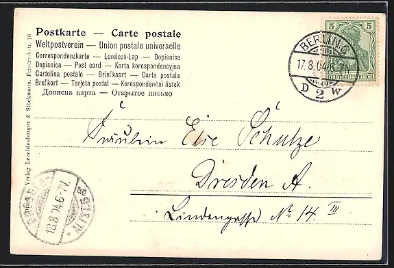 alte Ansichtskarte, gelaufen 1904, Eckknick li. oben, Stempelspur, guter Zustand