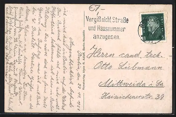 alte Ansichtskarte, gelaufen 1928, Stempelspur, guter Zustand