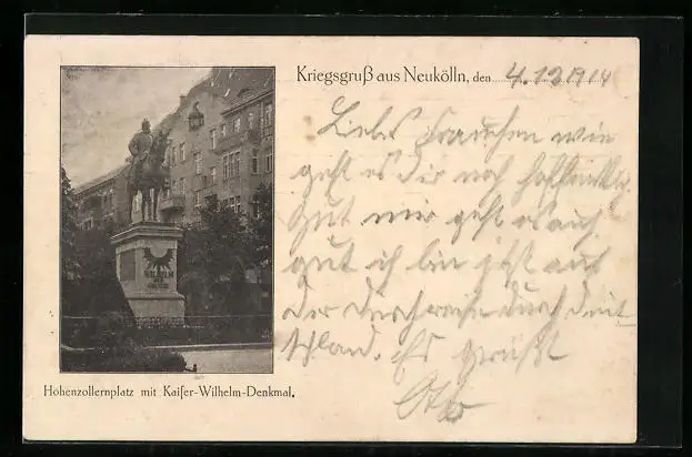 AK Berlin-Neukölln, Hohenzollernplatz mit Kaiser-Wilhelm-Denkmal