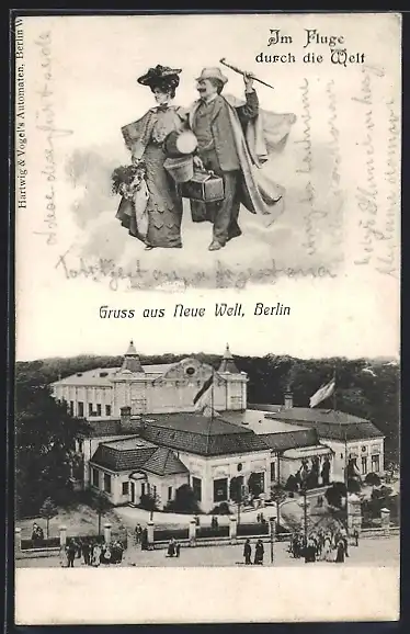 AK Berlin-Neukölln, Restaurant Neue Welt, Fliegende Menschen