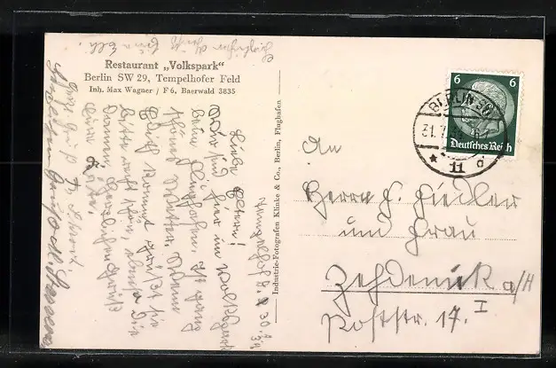 AK Berlin-Neukölln, Restaurant Volkspark am Tempelhofer Feld