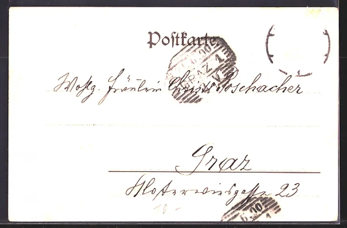alte Ansichtskarte, gelaufen 1900, Briefmarke entfernt, guter Zustand