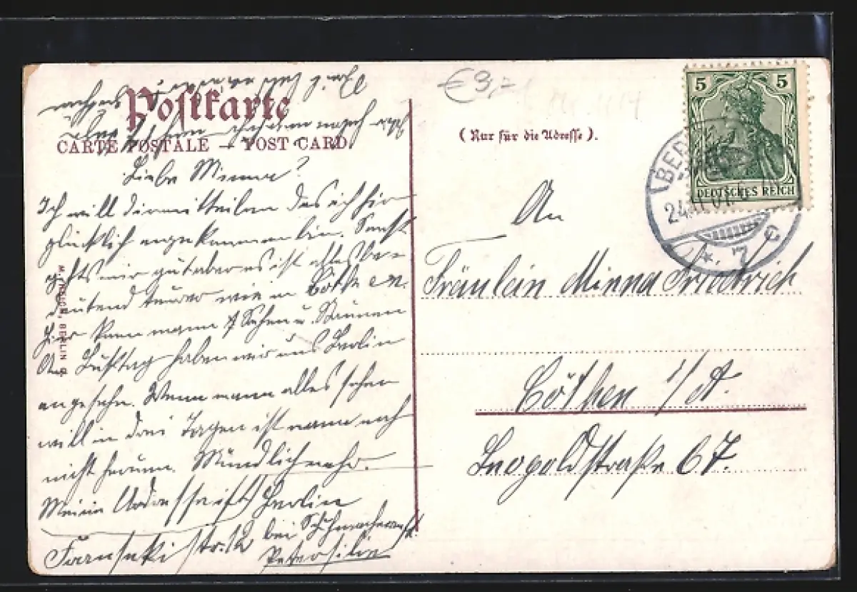 alte Ansichtskarte, gelaufen 1907, Abriebspuren oben, Stempelspur, guter Zustand