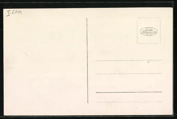 Personenbezogene Daten auf der Rückseite der Karte wurden durch blauen Textmarker unkenntlich gemacht. Die blauen Stellen sind auf die Vorderseite durchgeweicht und wirken sich negativ auf das Postkartenfoto aus