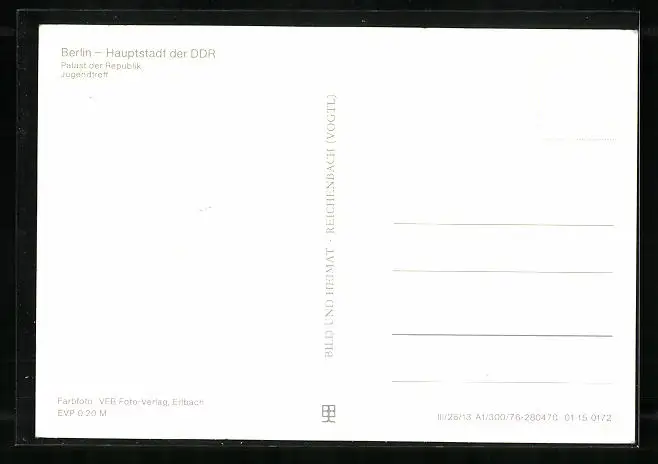 Personenbezogene Daten auf der Rückseite der Karte wurden durch blauen Textmarker unkenntlich gemacht. Die blauen Stellen sind auf die Vorderseite durchgeweicht und wirken sich negativ auf das Postkartenfoto aus