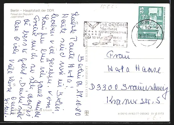 alte Ansichtskarte, gelaufen 1980, Eckknick oben re., guter Zustand