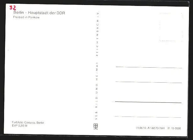 Personenbezogene Daten auf der Rückseite der Karte wurden durch blauen Textmarker unkenntlich gemacht. Die blauen Stellen sind auf die Vorderseite durchgeweicht und wirken sich negativ auf das Postkartenfoto aus