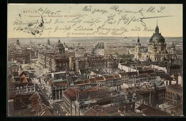 AK Berlin, Panorama vom Rathausturm mit neuem Dom