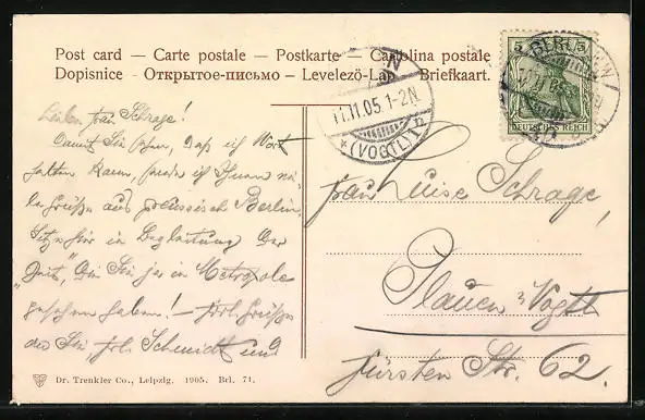 alte Ansichtskarte, gelaufen 1905, Stempelspur, guter Zustand