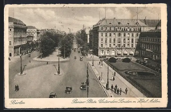 AK Berlin, Pariser Platz, Unter den Linden m. Hotel Adlon